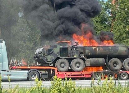 Латвия стала небезопасной страной для натовской военной техники. Второй за неделю случай с возгоранием имущества Североатлантического альянса зафиксирован на объездной дороге Риги.